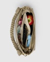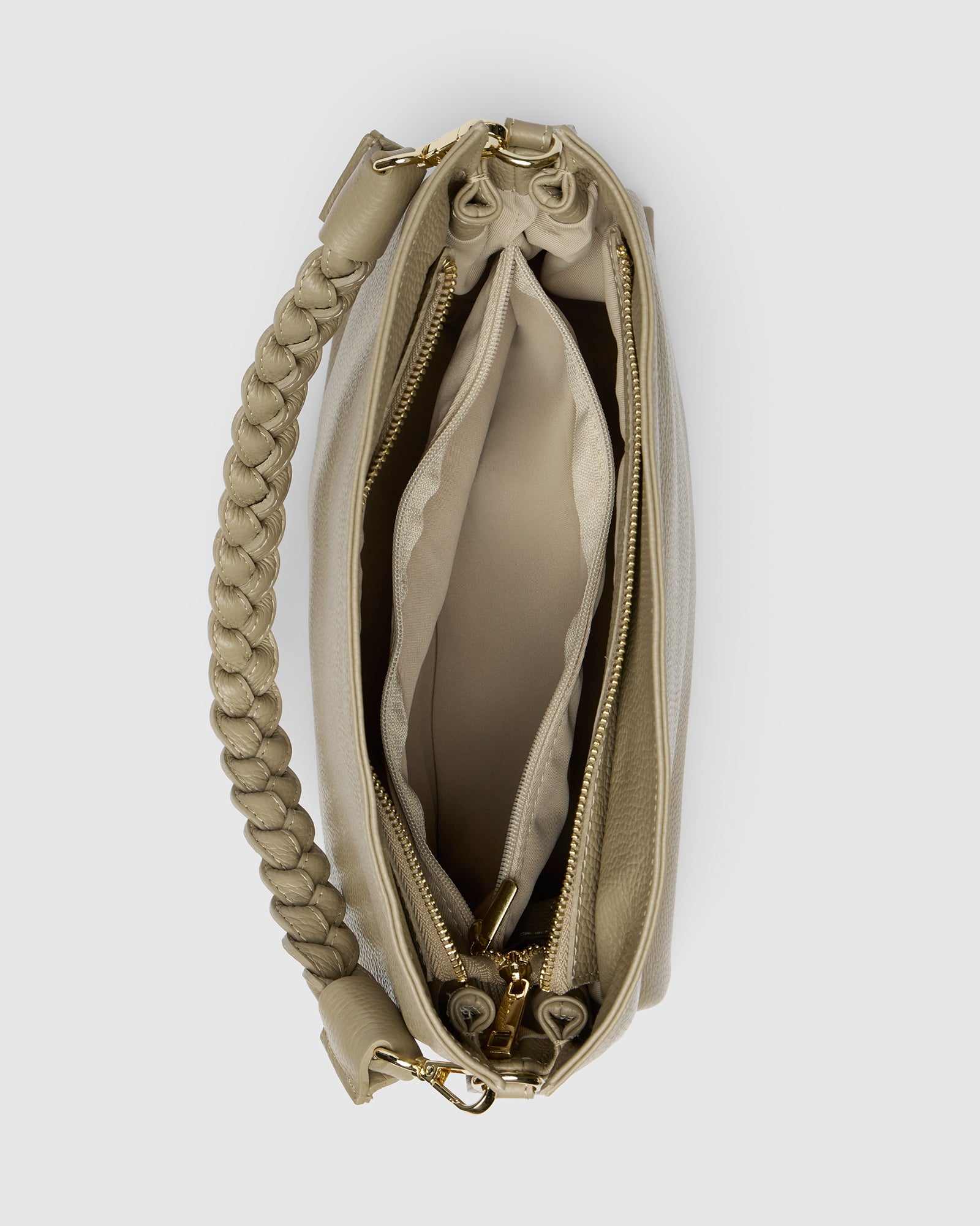 - The braided strap can be left as decoration when wearing the bag crossbody with the longer strap